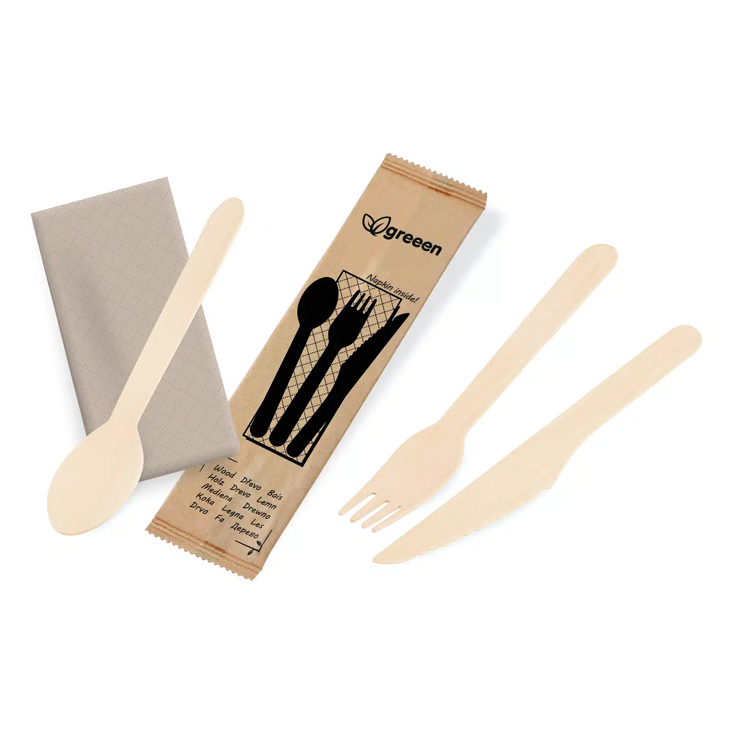 Besteckset (Messer-Gabel-Löffel+Serviette), FSC Holz