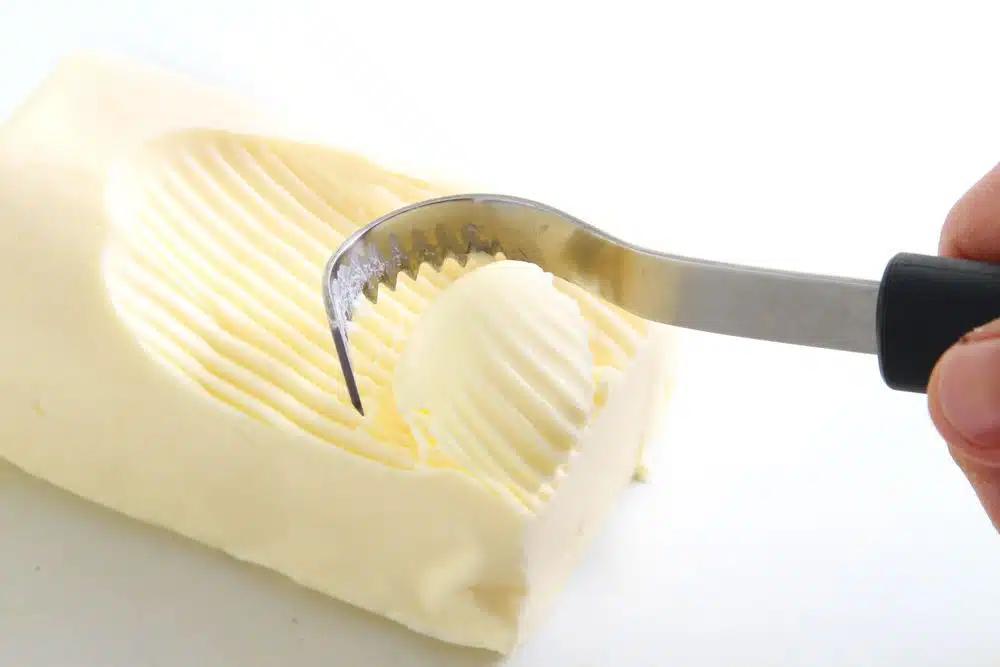 Gezahntes Modell zum einfachen Abstreichen von Butterflocken.