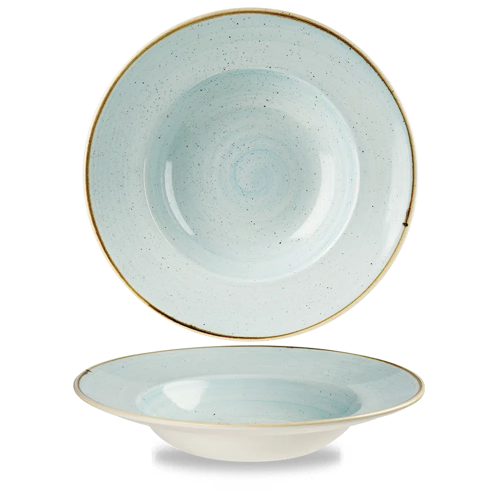 Rustikaler Charme wird durch ein atemberaubendes handbemaltes Farbwaschmittel in weichem Entenei-Blau und warmer Muskatnuss-Creme mit goldbrauner Sprenkelung und von Hand aufgetragenem Rand erweckt. Farben ergänzen die Zutaten und Töne der Frühlingsmonate, da die Lebendigkeit der saisonalen Lebensmittel zunimmt. Duck Egg Blue und Nutmeg Cream sind äußerst vielseitige Farben, die sich harmonisch in ungezwungenen und gehobenen Räumlichkeiten einfügen.