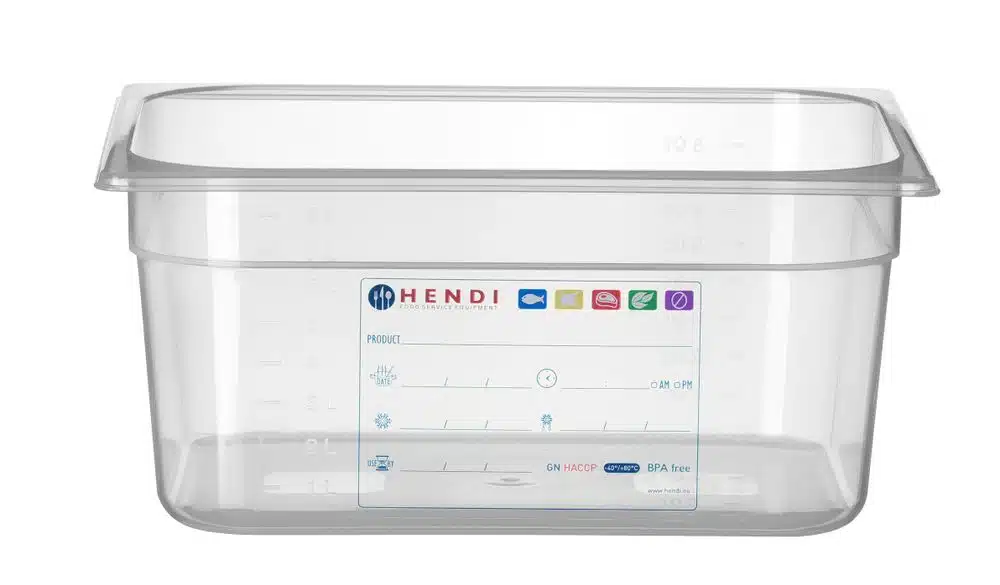 Der HENDI GN 1/2 HACCP-Behälter ist ein Muss in jeder Küche – eine vielseitige Lösung für die sichere Lagerung von Lebensmitteln. Der Behälter ermöglicht es Ihnen, Lebensmittel in Übereinstimmung mit HACCP-Standards zu speichern. Nimmt keine Gerüche und Geschmäcker an.
