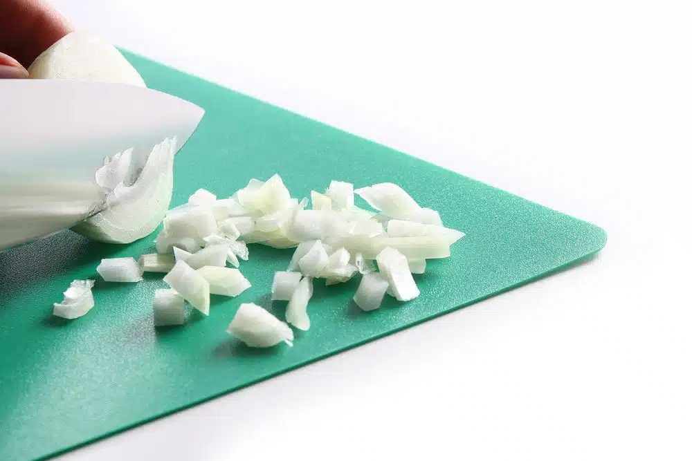 Durch die Biegsamkeit können geschnittene Lebensmittel einfach in den Topf gegeben werden.