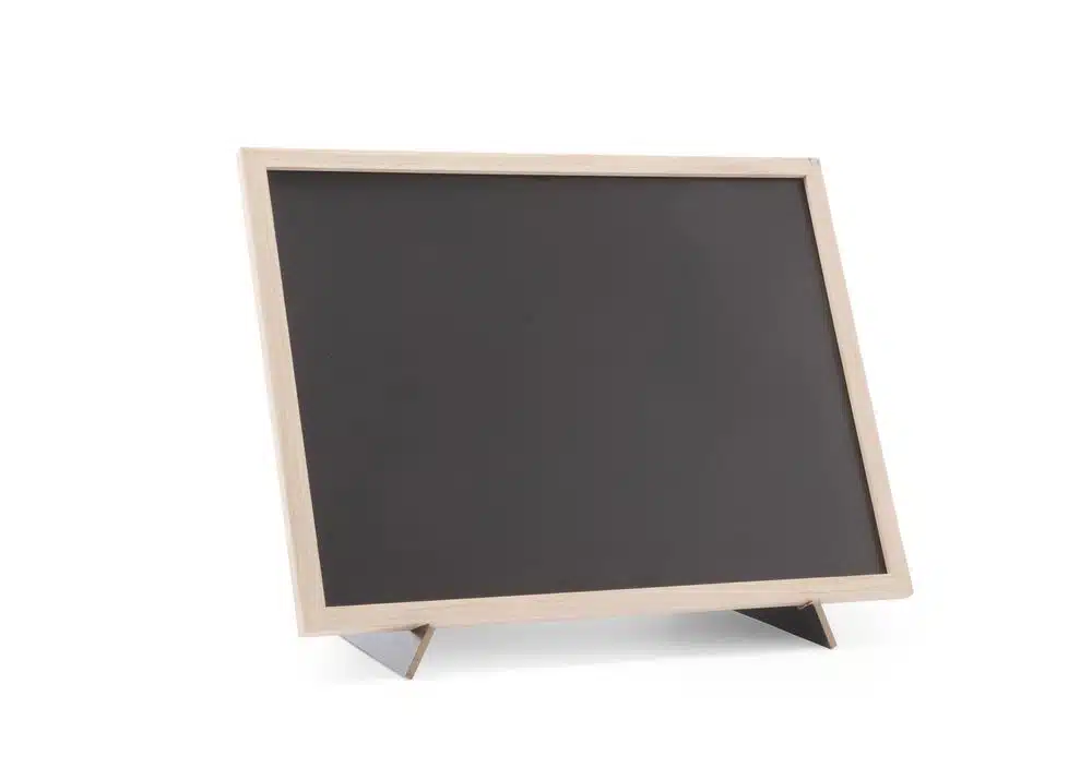 Großformatige Kreidetafel mit Holzrahmen.