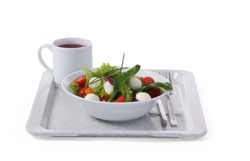 Das Amerbox Polyesterfach für Selbstbedienungsrestaurants besteht aus Polyesterlaminat, ist daher leicht zu reinigen, spülmaschinenfest und hält dem täglichen Gebrauch stand. Das intelligente Design ermöglicht es, dass Luft zwischen den Tabletts zirkuliert, wenn sie gestapelt werden.