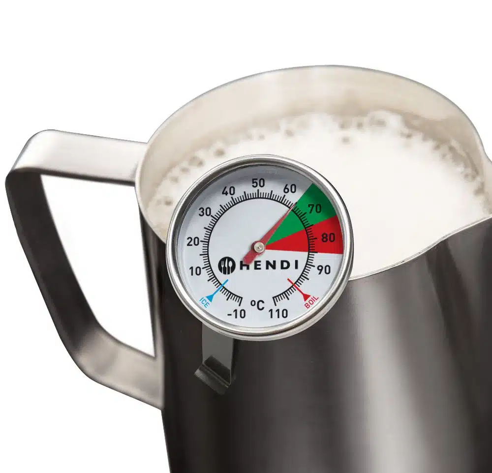 Mit Clip zum Befestigen des Thermometers an der Milchkanne.